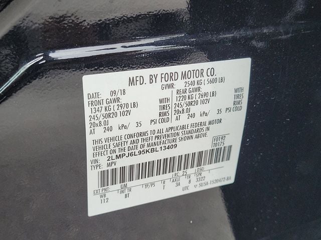 Black Metallic 2019 Lincoln Nautilus Reserve 2.0L Turbocharged FWD Lincoln Combined Details: