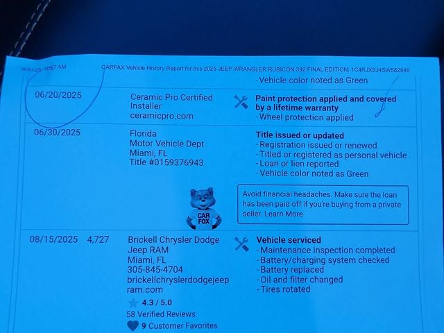 Mojito Clearcoat 2025 Jeep Wrangler Rubicon 392 SRT HEMI 6.4L V8 MDS 4WD